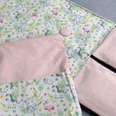 Introducing our exclusive Australian handmade baby change mat, adorned with a stunning African jungle print, featuring pink flamingoes, zebras and cute elephants available only at My Favourite Cousin. Designed with your baby's comfort in mind, this mat is padded to provide extra cushioning during nappy changes.