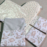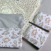 Introducing our exclusive Australian handmade baby change mat. This fabric feature cute little dinosaurs in neutral tones , perfect for any gender , so no need to wait for a reveal if you love dinosaurs .This one has a light sage colour combination but can be made with pink on request . Designed with your baby's comfort in mind, this mat is padded to provide extra cushioning during nappy changes.