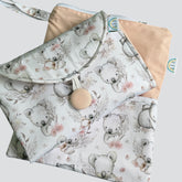 Introducing our exclusive Australian handmade baby change mat, sewn with a gorgeous koala and floral print with peachy pink trims, available only at My Favourite Cousin. Designed with your baby's comfort in mind, this mat is padded to provide extra cushioning during nappy changes.